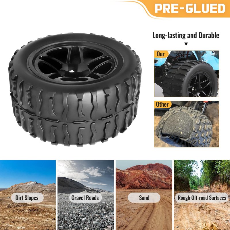 - 【Enhanced Durability】Built to endure off-road challenges, these durable tires provide smooth and controlled navigation across various terrains, from rocky trails to sandy paths