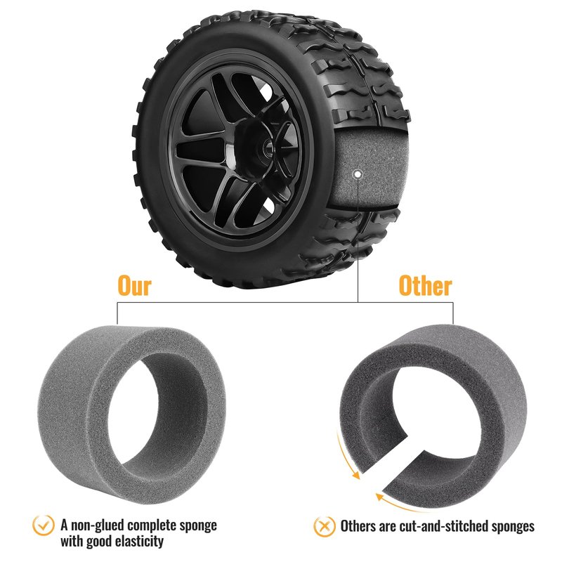- 【Material】Tire: Rubber; Wheel Rim: Durable Nylon Plastic ( assemble with Standard Foam Inserts)