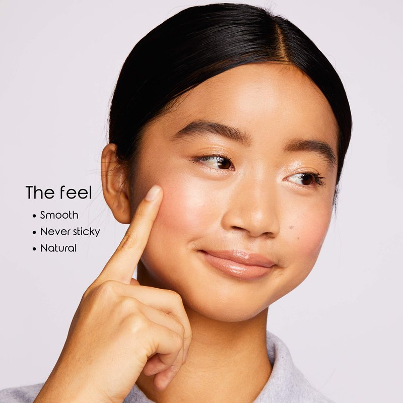 Get glowing with rosy confidence. Squeeze a pearl-sized amount of cream blush onto the back of your hand. Use your fingertips to dot and smooth small amounts onto your cheeks. Blend gently and feather the edges for a natural flush of color.
