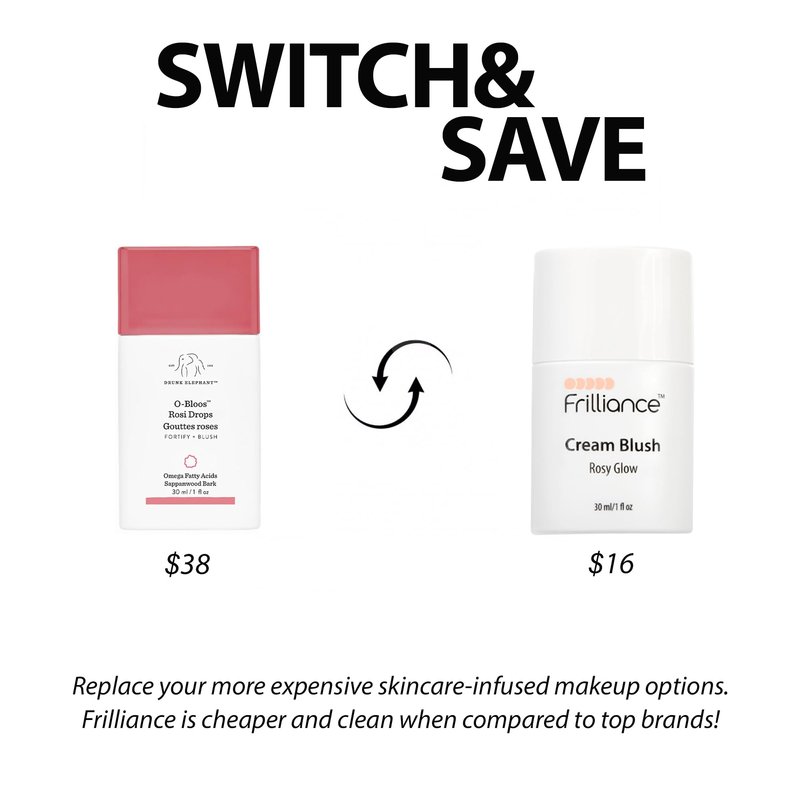 - SHEER HYDRATION: 30 ml / 1 fl oz Bottle of Frilliance Hydrating Cream Blush, Sheer Rosy Tint. Don’t rely on your auntie to pinch your cheeks for a healthy glow! This skin-friendly rosy tint is just the right amount of sheer color that both hydrates and puts roses on your cheeks.