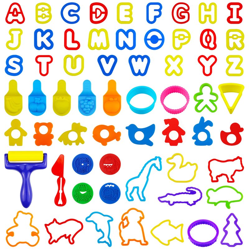 - Package Contains - 61 pieces various shapes of dough tools: letters, roller, animal molds, cookie cutters, stamps, etc.