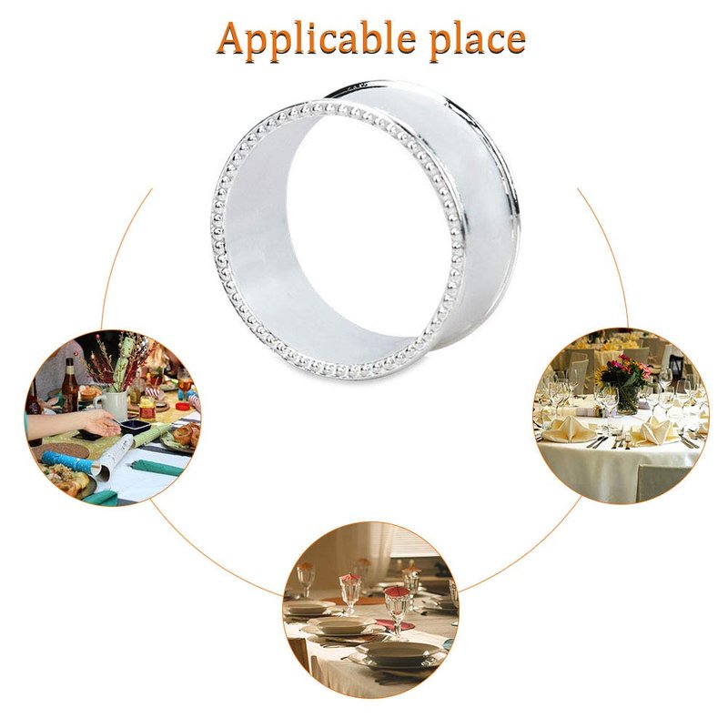 Frjjthchy 6 Pcs Stainless Steel Bead Side Napkin Rings Delicate Serviette Buckles (Silver)