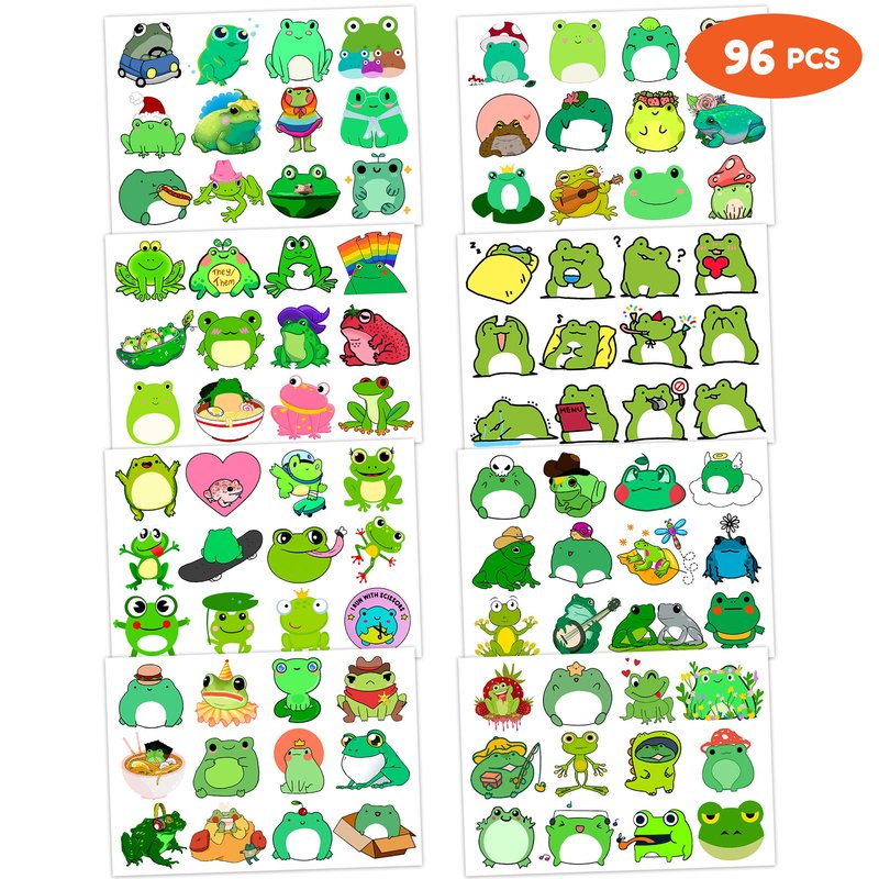 Frog Temporary Tattoos Birthday Themed Party Supplies Decorations Favors Cute Stickers Tattoo 8 Sheets 96 PCS Gifts for Kids Girls Boys Decor Class School Reward Carnival Christmas