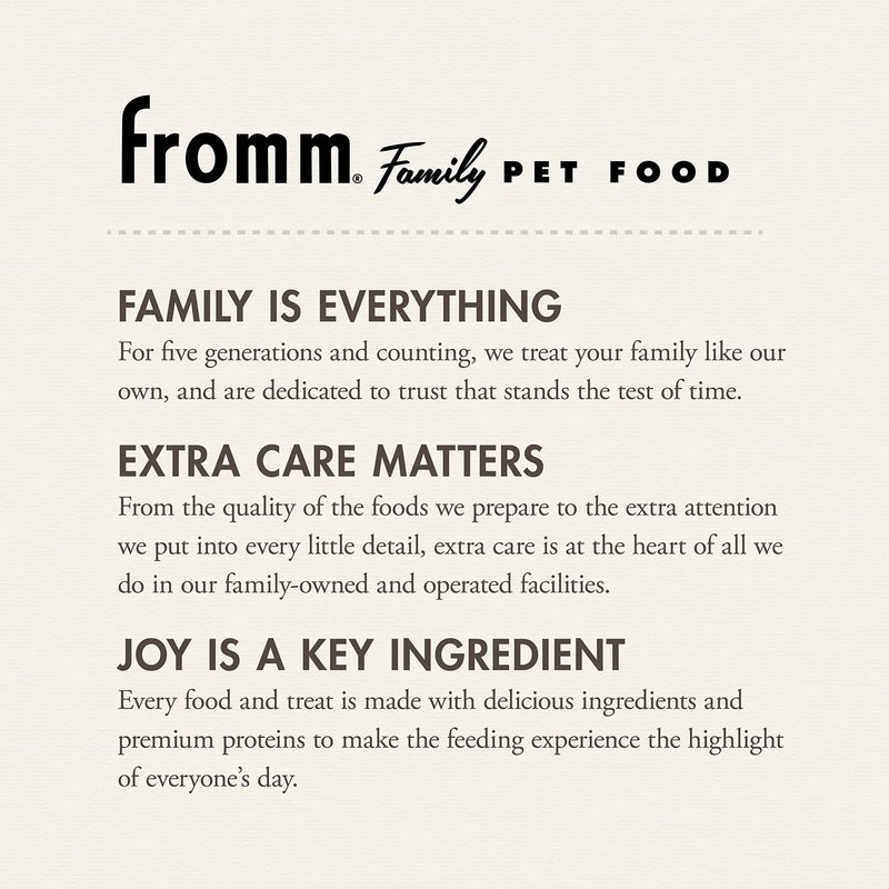 - FAMILY OWNED & OPERATED - Fromm Family Foods is a fifth-generation family-owned-and-operated pet food company based in Wisconsin. Since 1904, our family has maintained a tradition of quiet innovation dedicated to the health and nutrition of animals.