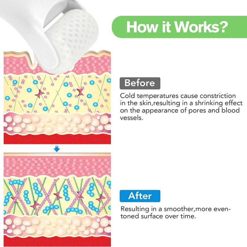 - Calm Skin:The coolness of the ice roller closes pores while the roller promotes blood circulation,which can reduce puffiness and wrinkling,reduce redness,fight puffy,fatigue,dry eyes, dark circles,early fine lines,restore radiance and lifts face.