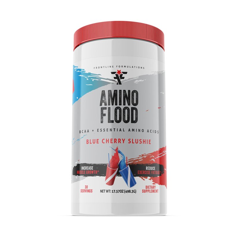 FRONTLINE FORMULATIONS Amino Flood, BCAAs + Essential Amino Acids, Building Blocks of Muscle, Comprehensive Formula, Great Taste, Veteran Owned and Operated (30 Servings, Blue Cherry Slushie)