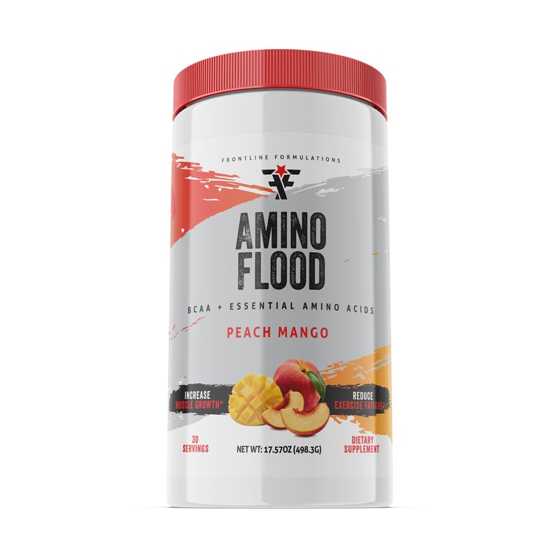 FRONTLINE FORMULATIONS Amino Flood, BCAAs + Essential Amino Acids, Building Blocks of Muscle, Comprehensive Formula, Great Taste, Veteran Owned and Operated (30 Servings, Peach Mango)