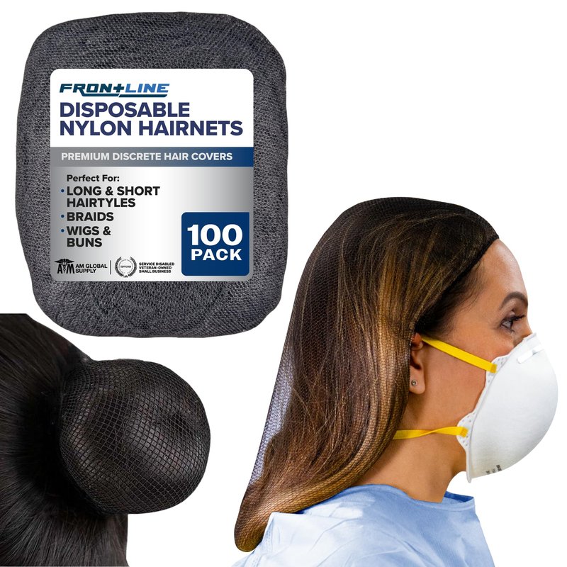 Keep your hair secure, neat, and professional with Frontline’s high-quality 24-inch black hairnets. Designed for comfort and durability, these hair nets are ideal for food service workers and various other professions that require tidy, restrained hair throughout the day. Crafted with care from breathable, lightweight nylon, these hairnets offer the ultimate balance of comfort and functionality. Our hairnets for women stretch up to 24 inches, providing full coverage for long hair, short hair, braids, or wigs, ensuring a fit that stays comfortable while looking polished. Whether you’re working in food service, healthcare, laboratories, or simply need a reliable hairnet at home, these versatile hair nets have you covered. Exceptional Stretch and Fit: These 24-inch hair nets stretch to fit most head sizes, making them suitable for various hair types and lengths, from short and fine to long and voluminous. They’re the go-to hairnets for food service workers, chefs, and anyone who values a secure fit. Secure, No-Slip Elastic Band: With a durable elastic band, our hairnets stay in place all day without slipping or loosening, making them perfect for rigorous food service, hair styling, and other hands-on tasks. Lightweight and Breathable Comfort: Made with premium nylon, our hairnets provide a lightweight, breathable feel that’s gentle on hair, helping prevent tangling or breakage during extended wear. Multiple Applications: These versatile hairnets for women are perfect for food service workers, nurses, lab technicians, hairstylists, and more, offering reliable, all-day comfort across various professional settings.