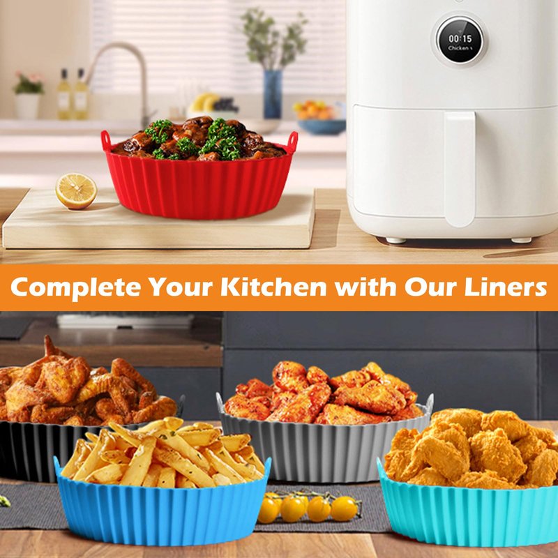 - ✅【EASY TO CLEAN & PRACTICAL DESIGN】As a must-have air fryer liner, you can easily clean your air fryer without worrying about food sticking to the bottom of the tray. Simply remove the tray and rinse it with water. Our air fryer silicone liner are designed with intimate handles on both sides to protect your hands from burns when removing the silicone pot.