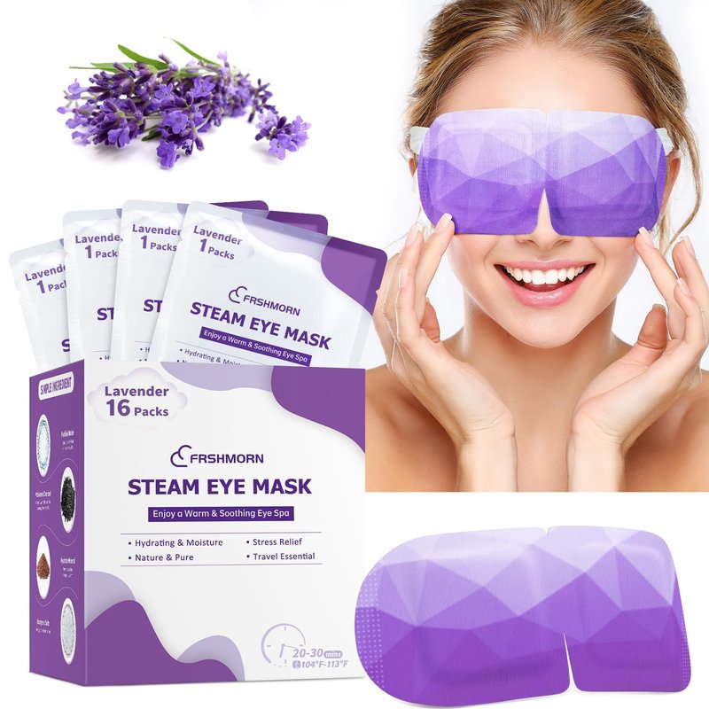 FRSHMORN 16 Packs Steam Eye Mask, Heated Eye Mask for Sleeping, Warm Compress for Eyes, Self Heating Disposal Eye Mask Comfortable Sleep Mask for Home, Office, Spa, Travel Essentials (Lavender)