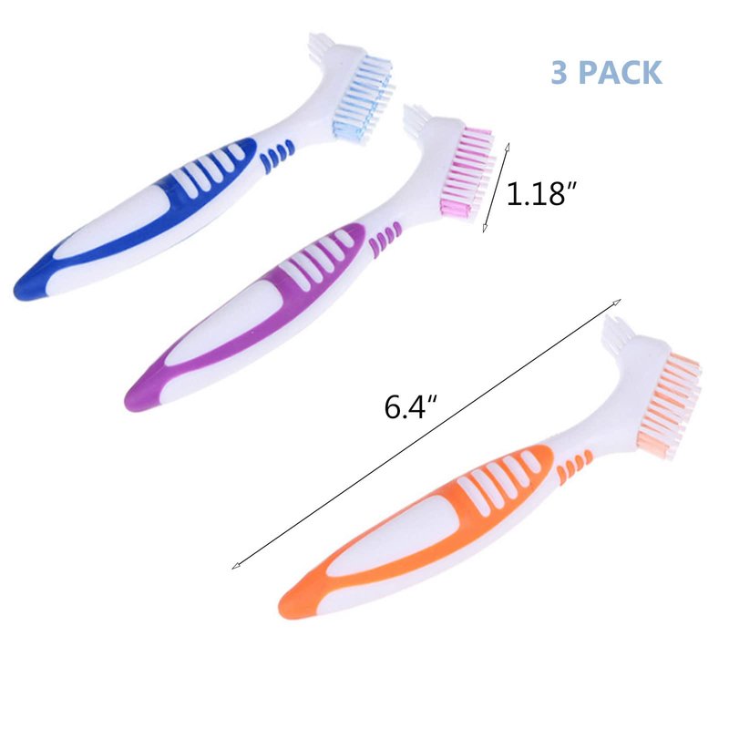 FRUTA 3 Pcs Denture Cleaning Brushes False Teeth Cleaning Brush Denture Double Sided Brush Multi-Layered Bristles Brush Portable Brush for False Teeth, 3 Colors