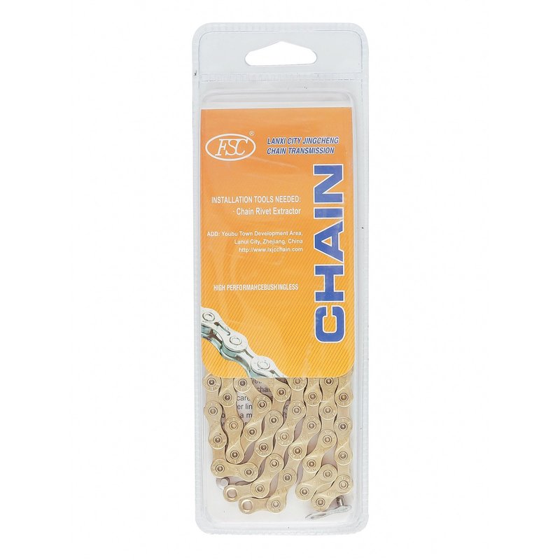 FSC 10 Speed 116 Links Bicycle Chain, Silver,Gold (1/2x11/128-Inch) Compatible with 9 Speed (Gold)