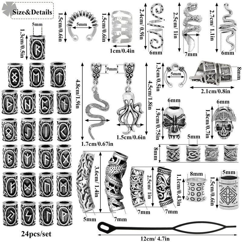 - Suitable Size:The smooth Viking accessories are perfectly sized for your beard and braids,and the boxed braid accessory set comes with a variety of beads in various diameters that are perfect for sliding through your hair.The norse bead designs are simple and basic enough to complement any other beard beads or jewelry you wish to pair with them.