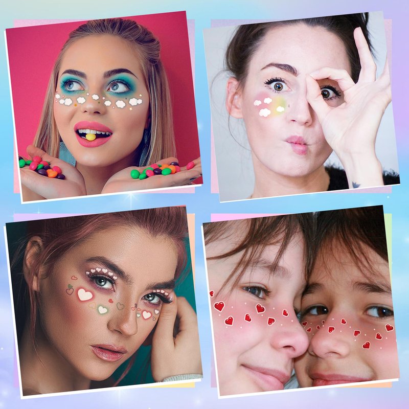 - More Charming: These face tattoos stickers are made with attention to detail and quality. And eye-catching patterns, it make you look more glamorous and passionate, different styles to add more fun to parties or your daily life. Vivid and attractive stickers will make you stand out from crowd and give you a good festival experience. Such great makeup kits will keep you unique. Share them with family and friends for a good time!