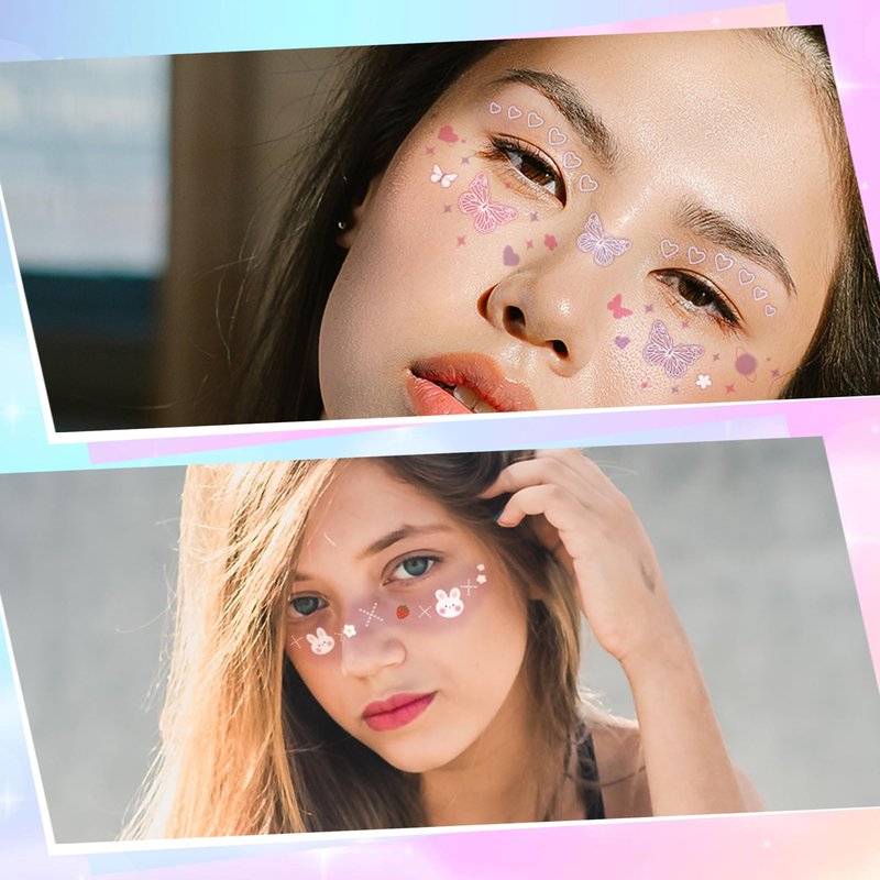 - Wide Application: These tattoo stickers go beyond just being applied on the skin. They can be used daily life, props, decorations, birthdays, raves, weddings, musical festivals etc or even party favors. It can also be used on glasses, guitars, notebooks, or anywhere else you want or like. These makeup tattoos would be a good choice for you! You can create a unique and beauty look that's good choice for anyoccasion. Let it unleash your creativity!