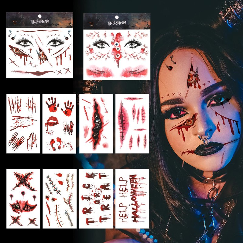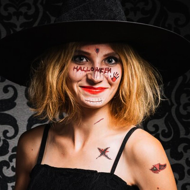 Application: Wide Application - attending a Halloween party, cosplay event, or just want to add some horror elements to your everyday look. These tattoo stickers go beyond just being applied on the skin. They can be used costumes, props, decorations or even party favors.