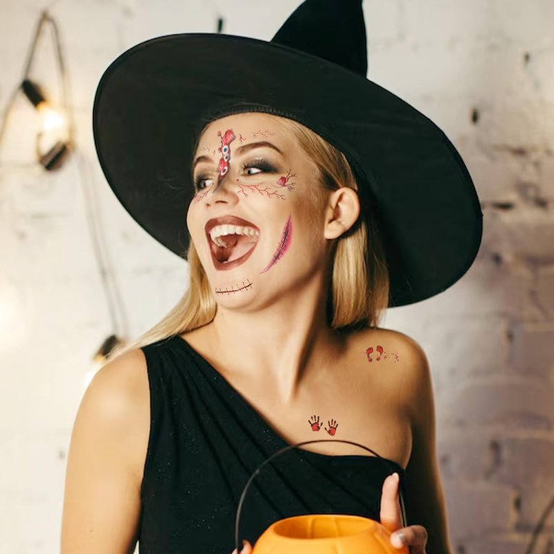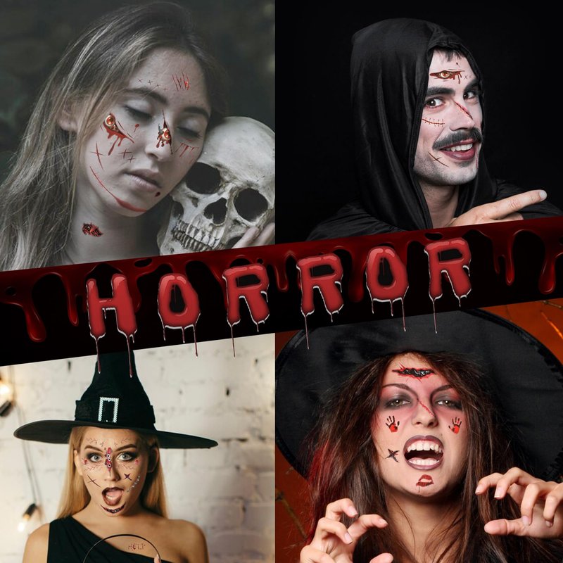 • Wide Application: Whether you're attending a Halloween party, cosplay event, or just want to add some horror elements to your everyday look, these halloween makeup tattoos are good for you. These tattoo stickers go beyond just being applied on the skin. They can be used costumes, props, decorations or even party favors. Perfect for you and your friends cosplay. You can create a unique and horror look that's perfect for any occasion. Unleash your creativity!
