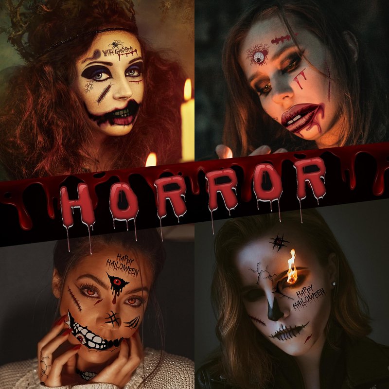 - Wide Application: Whether you're attending a Halloween party, cosplay event, or just want to add some horror elements to your everyday look, these halloween makeup tattoos would be a good choice for you! These tattoo stickers go beyond just being applied on the skin. They can be used costumes, props, decorations or even party favors. Perfect for you and your friends cosplay. You can create a unique and horror look that's perfect for any occasion. Let it unleash your creativity!