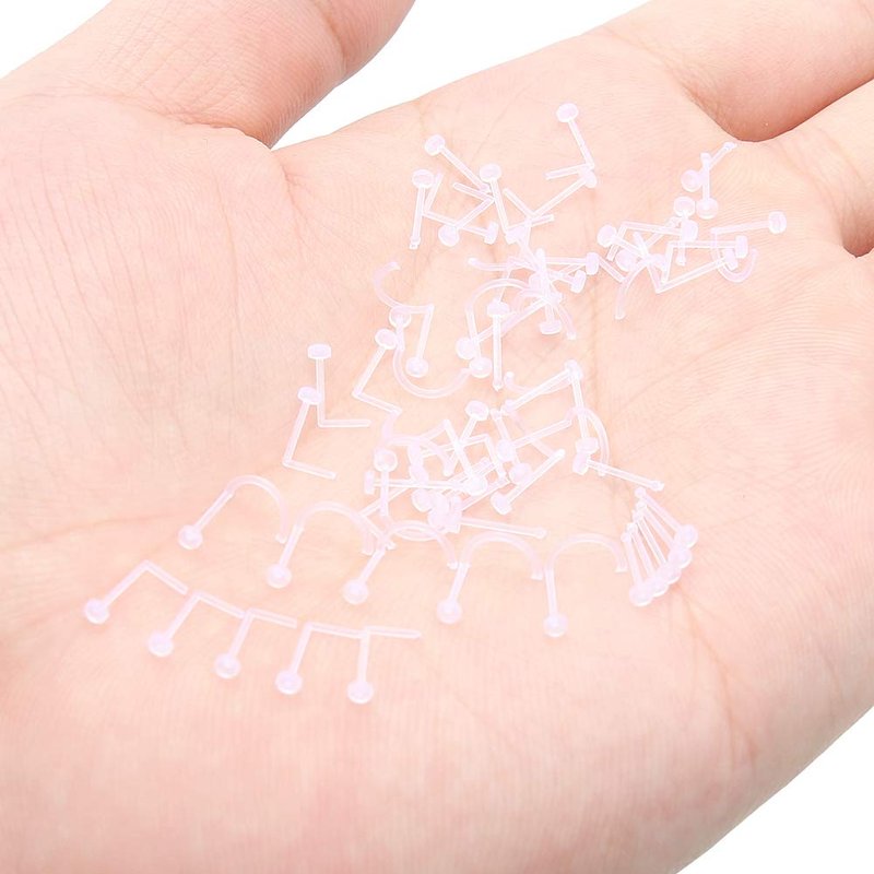 - Thickness: 22G(0.6mm); Top Flat Diameter: 2mm; Wearable Bar Length: 6.5mm; Color: Clear. The Package Includes 60 Pieces Acrylic Nose Studs, 20 Pieces for Each Style, Good Necessity for Your Daily Wearing and Party Occasion.