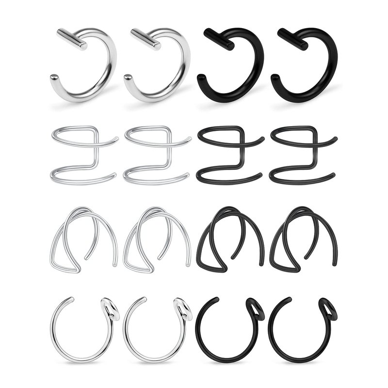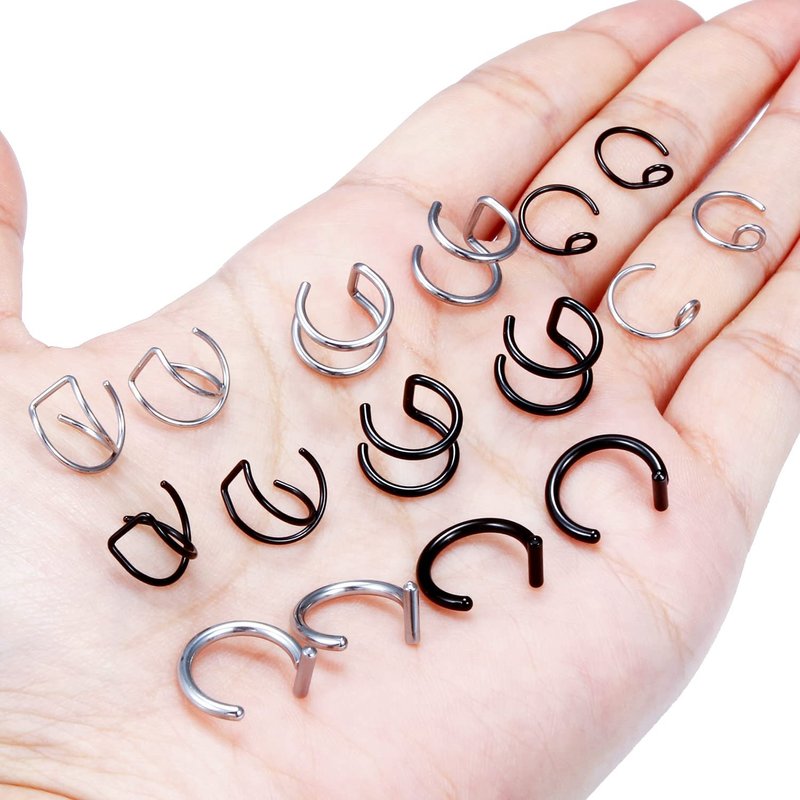 - USING: These Fake Piercing Jewelry Kit Can Be Used as Non-pierced Fake Lip Rings, Fake Cartilage Earrings, Helix Earring Hoop and Fake Nose Rings.