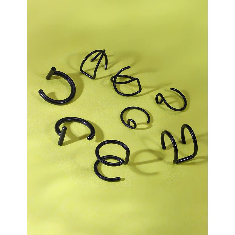 - 8PAIRS FAKE LIP RINGS: 2Pairs T-shaped Fake Lip Rings Hoop, 4Pairs Clip on Non piercing Double Ear Cuff, 2Pairs Fake Nose Hoop Rings; Give You Mutiply Wearring Outfit, Reasonable Price for Body Jewelry, Deserve to Purchase.