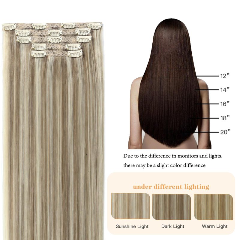 - 【High Quality Real Human Hair Clip in】Our clip in hair extensions are made from 100% Remy Human Hair. As smooth and soft as your own hair, tangle-free and non-shedding, double weft covered by lace, more breathable and comfortable. Cut, washed, dyed, straightened and curled to your liking and it can combs and styles easily. You can use our hair extensions in any scene, you will be more charming and shining.