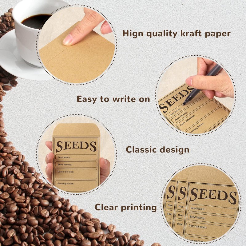 - 【Proper Size】Each seed packets measures approx. 8 x 12 cm/ 3.15 x 4.72 inches, properly in size and light in weight, which can store your beans, seeds, coins and other small items
