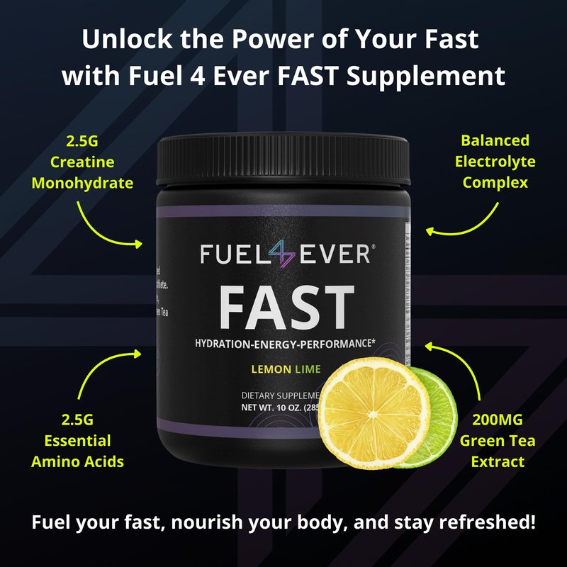 - Fuel your fast, nourish your body, and stay refreshed with Fuel 4 Ever’s Lemon Lime FAST supplement. Try it today and feel the difference!