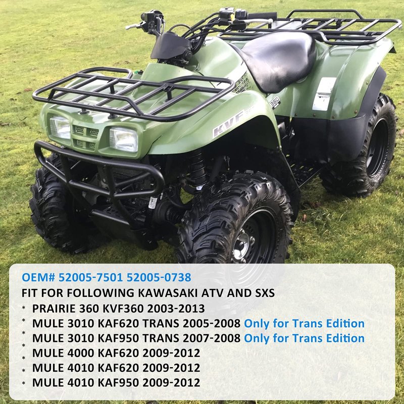 - 【Fitment】▶ for Prairie 360 KVF360 2003-2013 ▶ for Mule 3010 KAF620 Trans 2005-2008 Only for Trans Edition ▶ for Mule 3010 KAF950 Trans 2007-2008 Only for Trans Edition ▶ for Mule 4000 KAF620 2009-2012 ▶ for Mule 4010 KAF620 2009-2012 ▶ for Mule 4010 KAF950 2009-2012