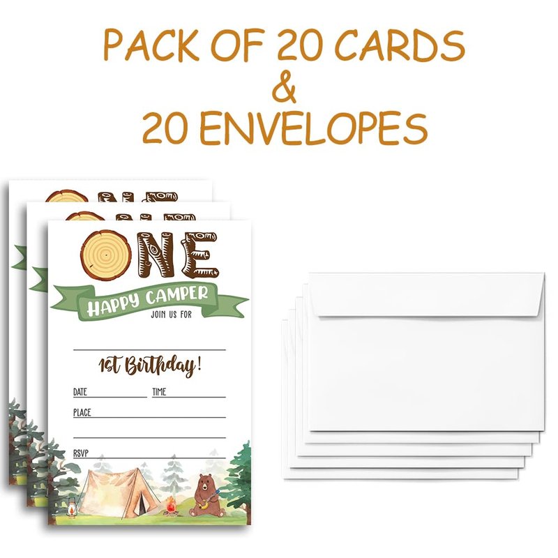 FujLoy Happy Camper Invitation, One Happy Camper Birthday Invitation, Camper Party Invitations cards.(069)