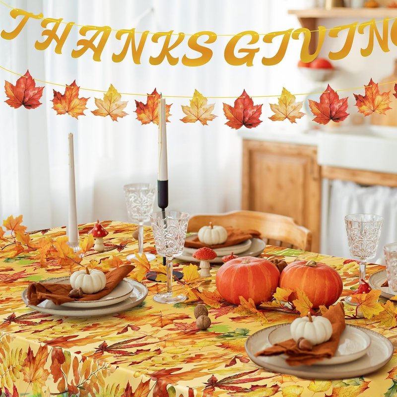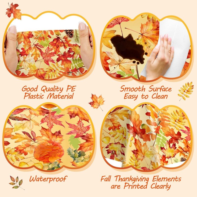 - Easy to Clean: Our Thanksgiving maple leaf tableware set is waterproof, oil-proof, and stain-resistant, protecting your rectangular table from spills and stains. Cleanup is a breeze—simply roll up the tablecloth and dispose of it after the event, giving you more time to enjoy with family and friends.