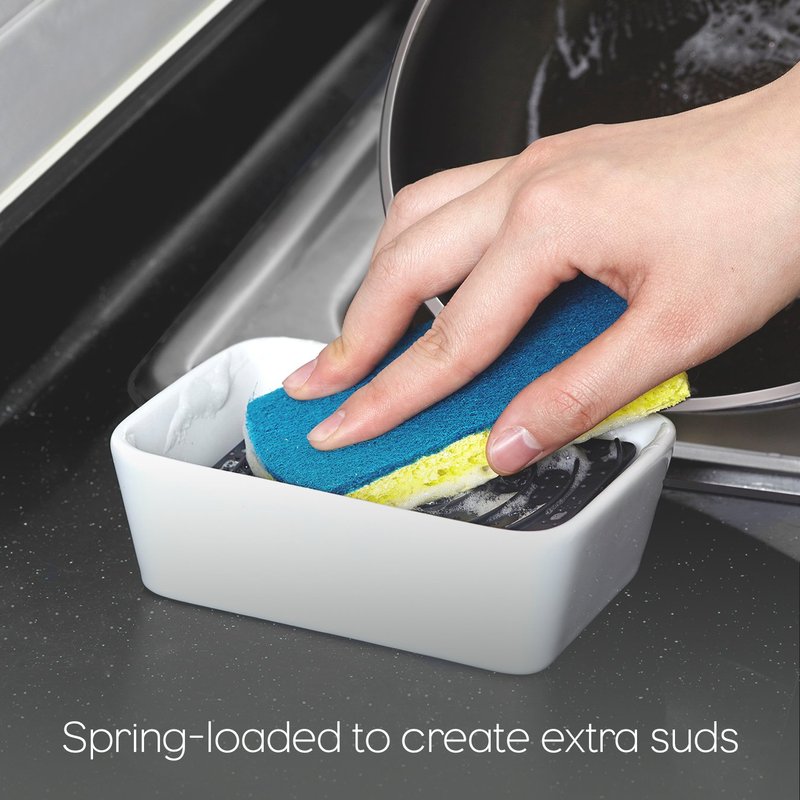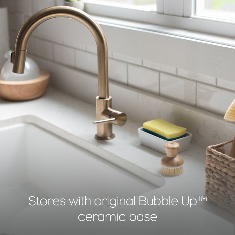 Full Circle Bubble Up Ceramic Soap Dispenser & Scrubber Sponge Set, White