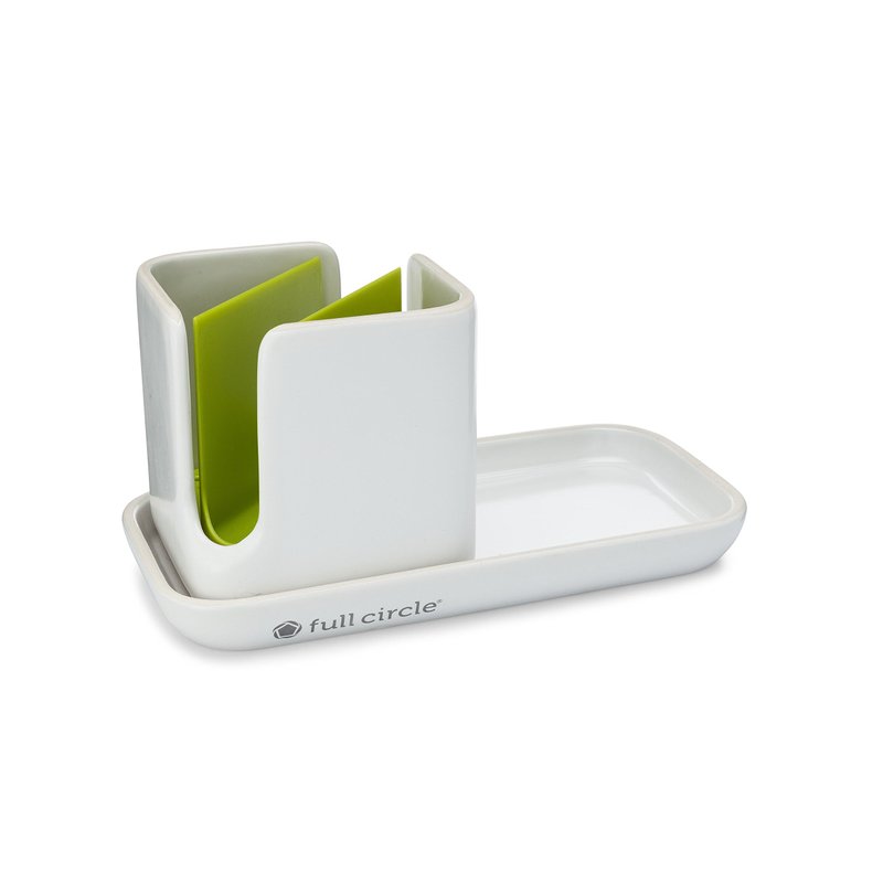Full Circle Stash Ceramic Sink Caddy and Organizer, Green and White