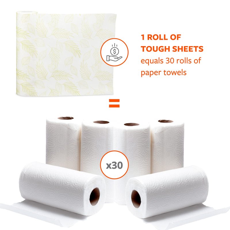 - TREE-FREE PAPER TOWELS: Our Tough Sheet reusable paper towels are a great way to reduce your paper towel usage; each towel roll has 30 sheets, and one sheet = one roll of traditional paper towels
