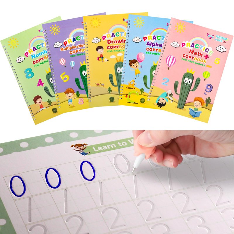 - PREMIUM HANDWRITING PRACTICE SET: PracticeJQDEN handwriting practice set includes 5 different themed handwriting books (letters, numbers, arithmetic, drawing, multiplication and division), pencil grips, extra 30 refills, and storage bag.