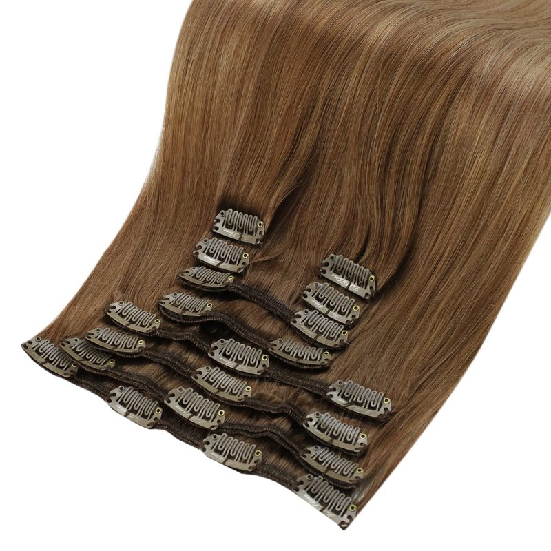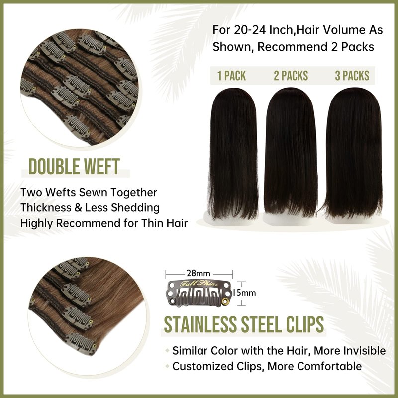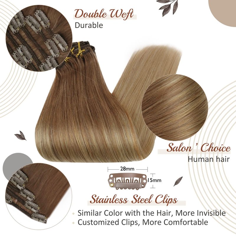 • 【Triple Weft Hair Clip in Extensions】Our clip in hair is three-layer weft,which is flat and invisible than most double weft clip in human hair on Amazon.This can also reduce the possibility of hair loss.