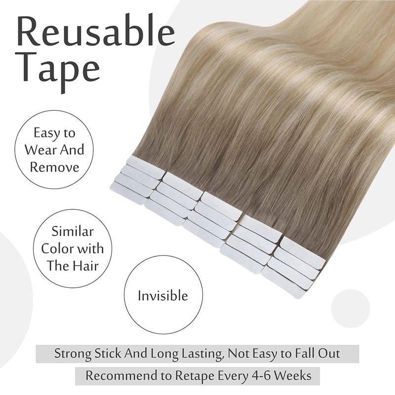 - [More Hairstyle Options] If You Want to Try Out a New Look,Tape in Hair Extensions Can Help You Achieve Your Desired Hair Goals.Since They Are Real Human Hair,You Can Experiment with Your Hair Extension by Using a Straightener.Hair Can be Washed,Strengthened,Curled.Our Tape Extension Are Made with a New And Advanced Anti Shedding Technology That Allows Your Hair Extension to Last As Well As Super Strong Tape Used to Avoid Dropping After Installing.Replace The Tape And Reuse for Every 2-4 Weeks.