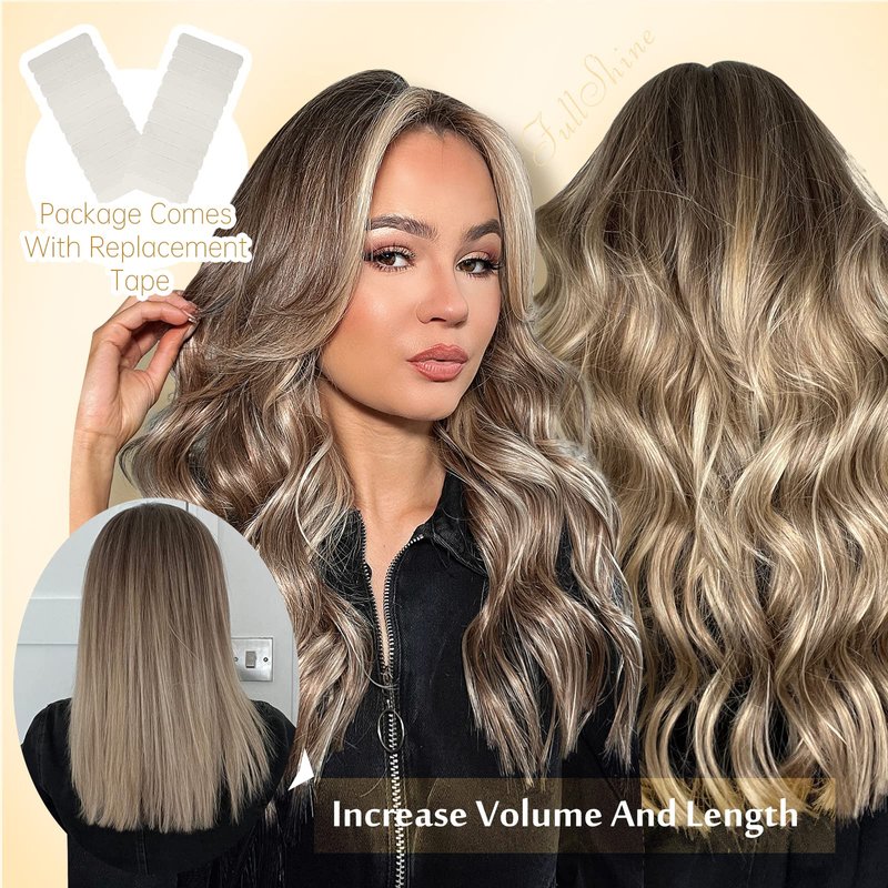 - [Available in Various Shades] Balayage And Ombre And Pure Colors Are Available.Full Shine Tape in Hair Extensions Human Hair Offer You So Many Different Shades for You to Choose From,From Natural Shades of Blonde, Brown And Black to Other Trendy Colors. When Using Them, You Can Also Always Create Your Preferred Perfect Blend by Using Two or Three Different Shades to Obtain The Most Natural Look.Always Confirm Your Roots Color at First And Then Decide The Bottom Color.