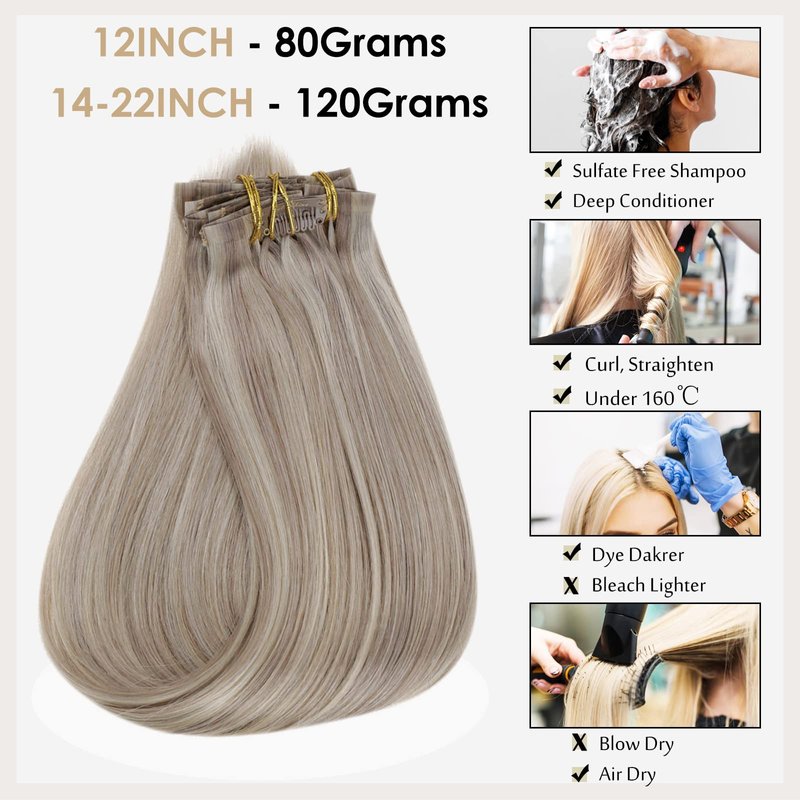 - 【Full Shine Seamless Clip Ins Specification】Full shine invisible human hair clip in extensions 12inch-80g,14-22inch 120g with clips, they are all 8pcs,If you have thick hair, we recommend 1-2 packs to add weight, 2-3 packs to add length. If you have thin hair, we recommend 1-2 packs to add length, 2-3 packs to add weight.