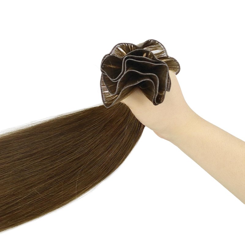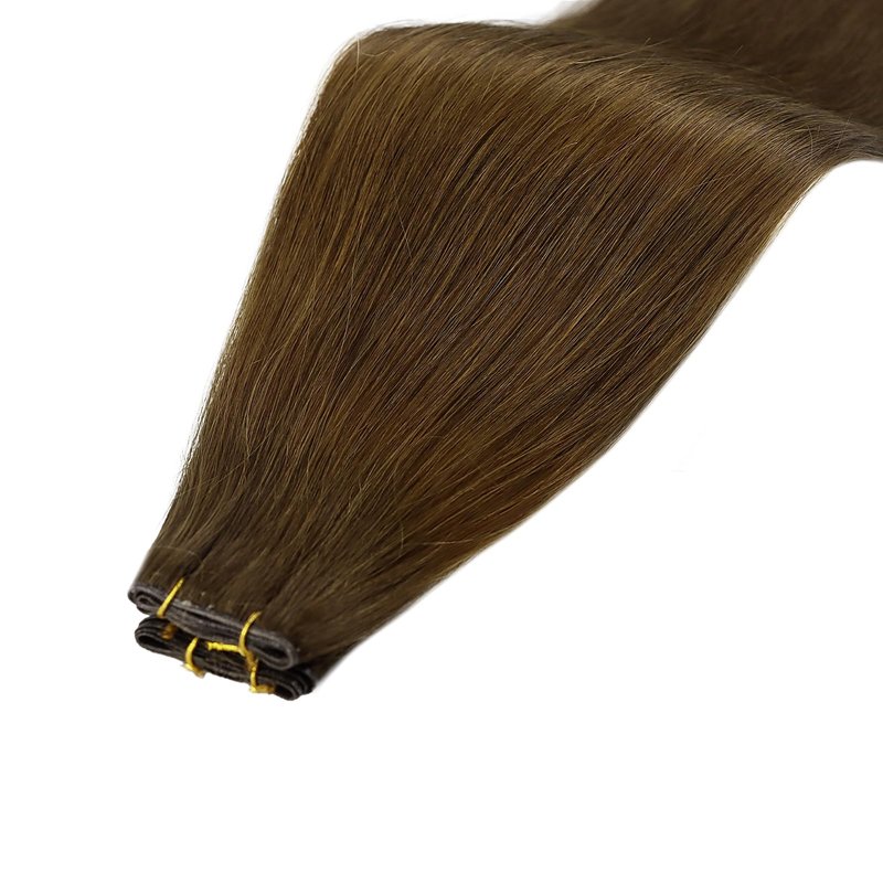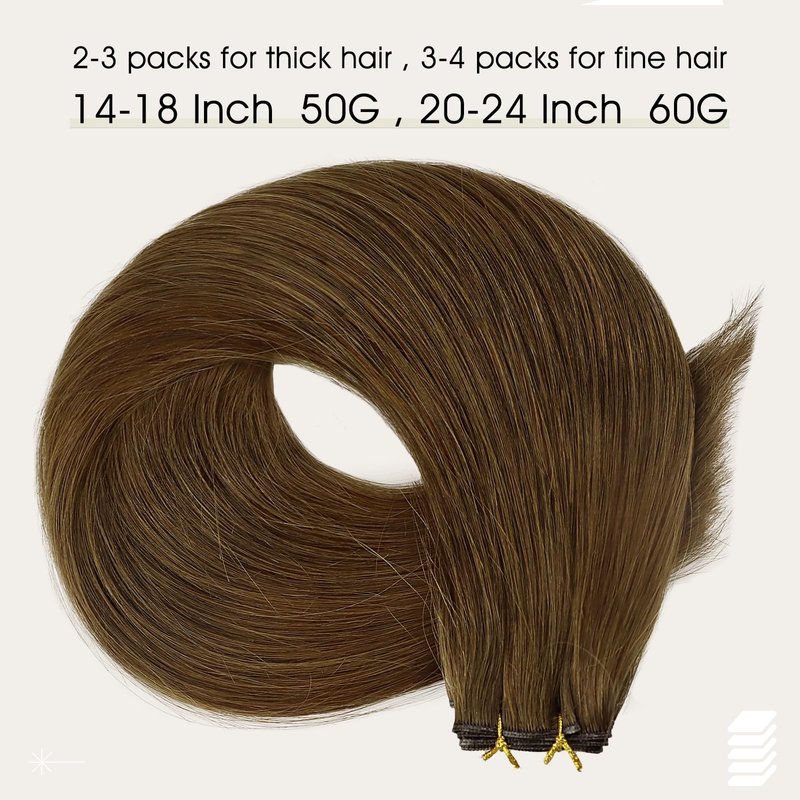 Full Shine Hand Tied Hair Extensions Human Hair Color Medium Brown Human Hair Weft Double Weft Sew Human Hair Genius Weft Hair Extensions For Women Sew In Hair Extensions Real Human Hair 50G 14 Inch