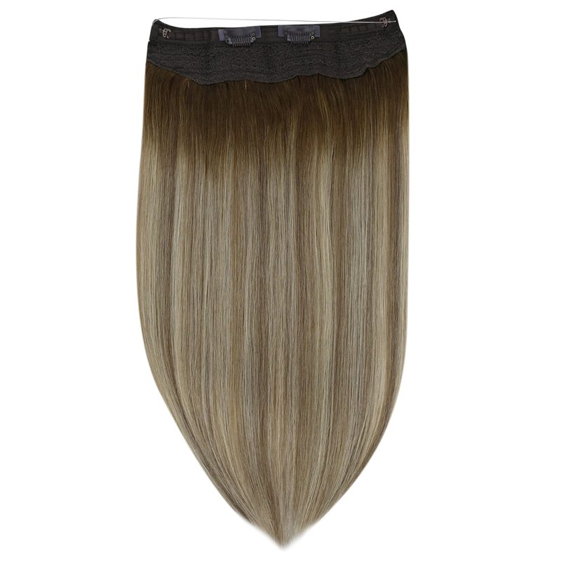 Full Shine Wire Hair Extensions Real Human Hair Fishing Line Hair Extensions Secret Extensions Brown Mix With Blonde Balayage Ombre Invisible Wire Hair Extensions Human Hair 14 Inch 70g
