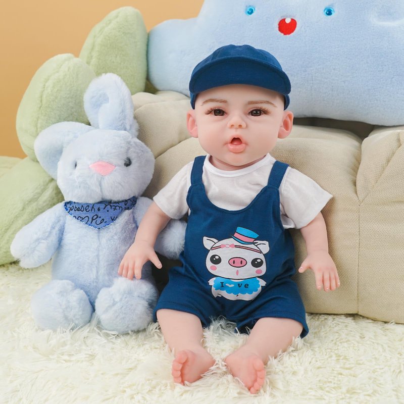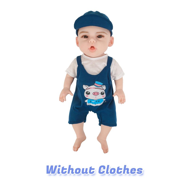 Full Silicone Doll Clothes Outfits for 17.7"- 18.5", Reborn Baby Doll Suit Accesories Set - Newborn Girl Boy Baby Clothing Gifts Set - DarkBlue Set (Clothes Only)