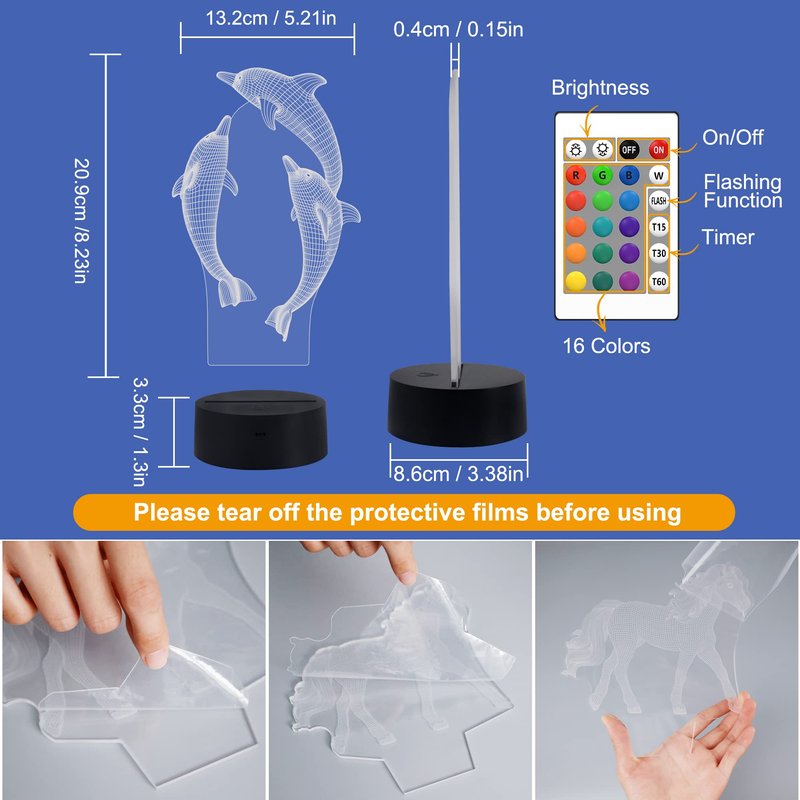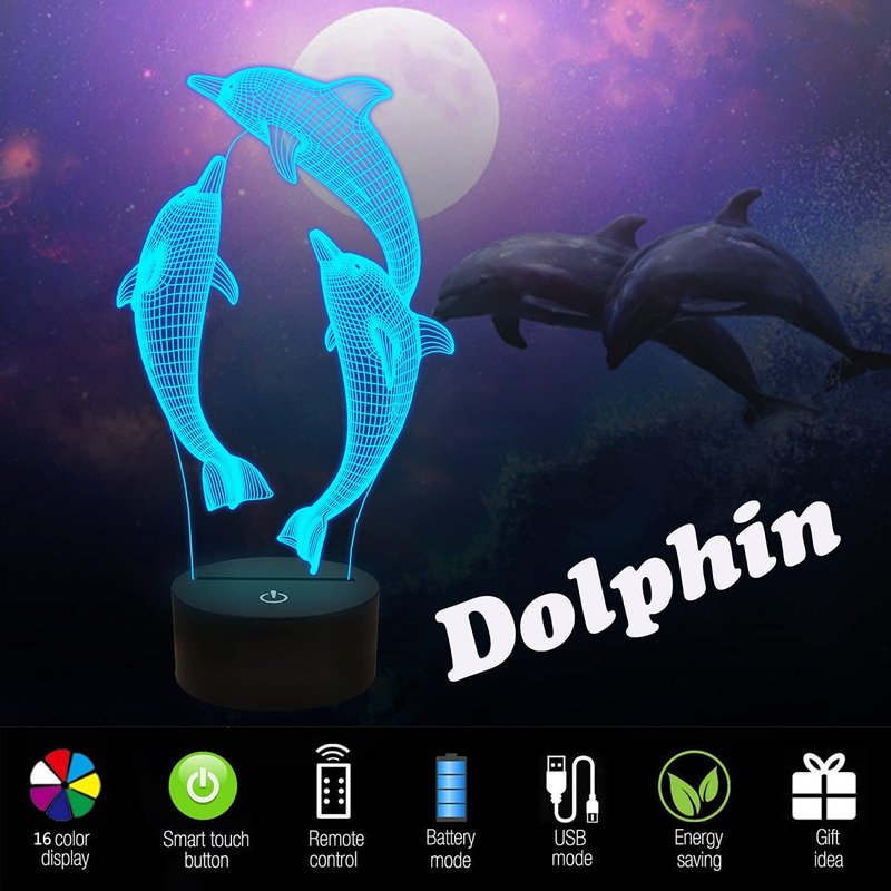 - e dolphin 3d Light create the vivid 3D effect which brings kids whole lot of joy but also can keep them sleep safe
