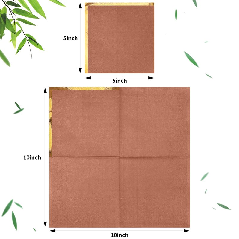 - Elegant Design: with their golden edges and elegant terracotta color, guests will like these disposable napkins for wedding; They can add elegance and charm to celebratory parties such as baby showers, weddings, Thanksgiving, and more, making them an ideal addition to many tables settings