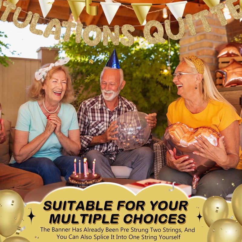 - Easy to Install: the congratulations quitter retirement banner, a retirement banner, is pre strung and ready to hang upon arrival; It reduces the stress and time often associated with party setup; Simply unpack it, unfold and hang it up; Its ease of assembly and time saving attributes make it a choice for spontaneous celebrations