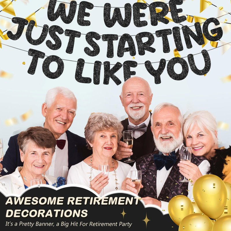 - Celebrate a Meaningful Retirement in Style: the theme of our retirement banner is honoring a good person who has worked tirelessly for his or her retirement; It maintains the retirement atmosphere with the ideal balance of cheery, sparkly, and glitter elements; It's a given that it will make the decorations for your retirement party and provide an unforgettable celebration for you and your loved ones