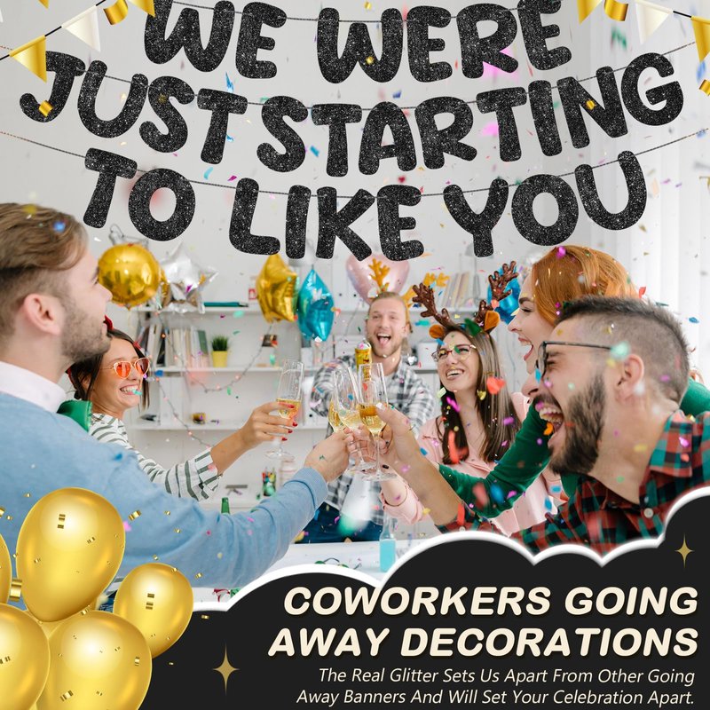 - Enhance Your Party Ambiance: party banners are meticulously designed, and we ensured that our we were just starting to like you banners were of quality; The glitter sets us apart from other going away banners and will set your celebration apart too; The no DIY banners save you time and add that extra touch to elevate your party