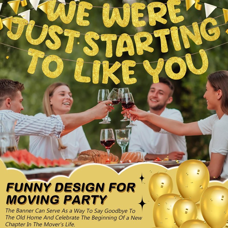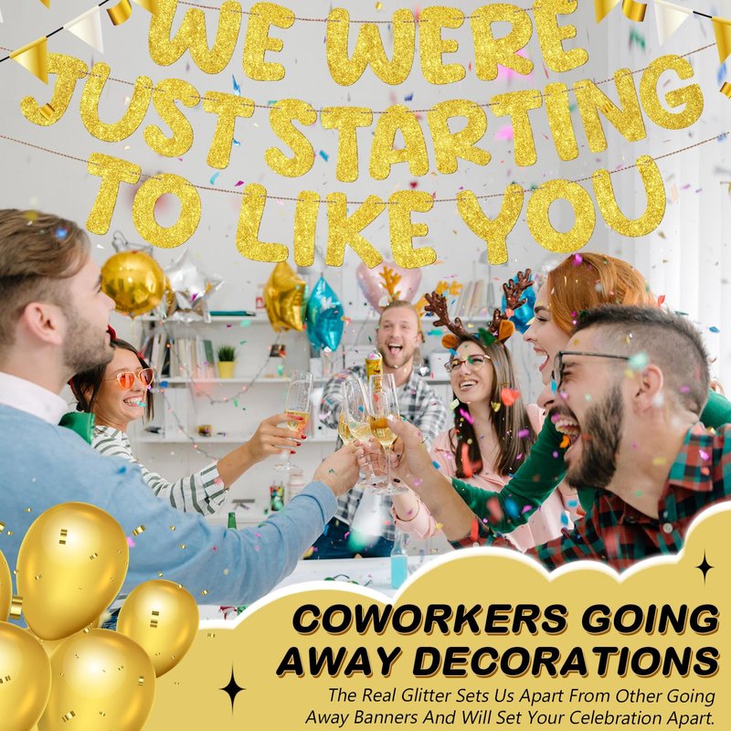 Features: With your needs in mind, we include 1 pack of our "We Were Just Starting To Like You" banner in each package. This ensures that you have all the necessary going away party decorations for creating a memorable event without going through the hassle of purchasing supplementary items. More than just a retirement banner, it serves as an excellent prop for various events. Use it to add a touch of sparkle to going away parties, farewell parties, or goodbye parties. Our banner caters to all your decoration needs, creating a lighthearted atmosphere for any gathering. Specifications: Material: Paper Color: Gold Size: height of our banner is about 6.3 inches/16cm Package includes: 1 x We were just starting to like you banner 3 X 118.11 inches/300cm rope Notes: Manual measurement, please allow slight errors on size. The color may exist a slight difference due to different screen displays.