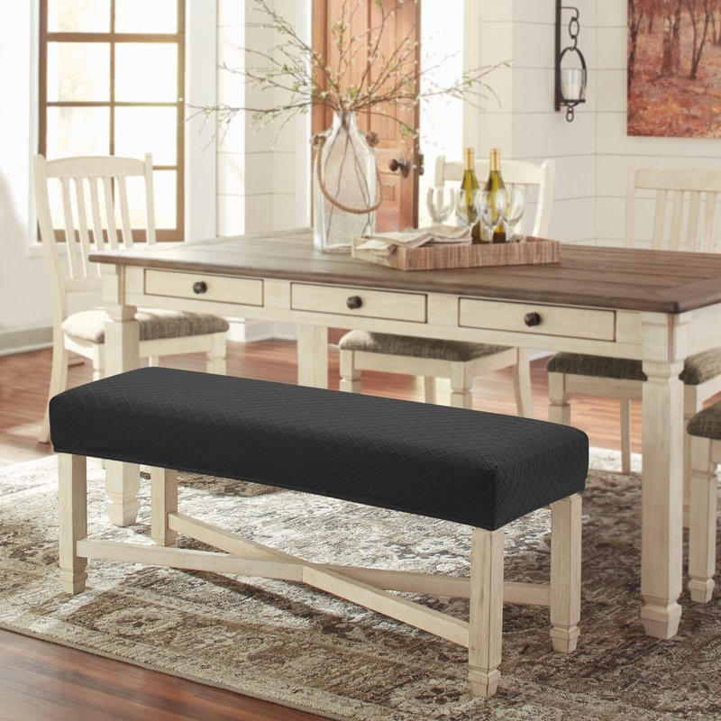 Fuloon Stretch Jacquard Dining Bench Cover - Anti-Dust Removable Bench Slipcover Washable Bench Seat Protector Cover for Living Room, Bedroom, Kitchen (Black)