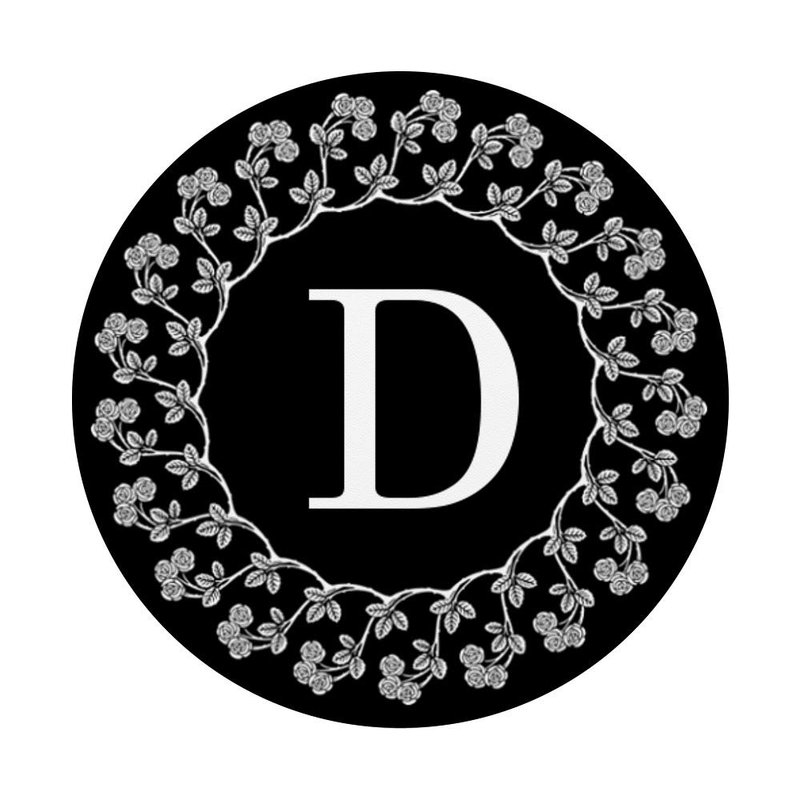 Fun Cell Phone Pop Up Holder,Cute White Floral Rose Letter D PopSockets Grip and Stand for Phones and Tablets